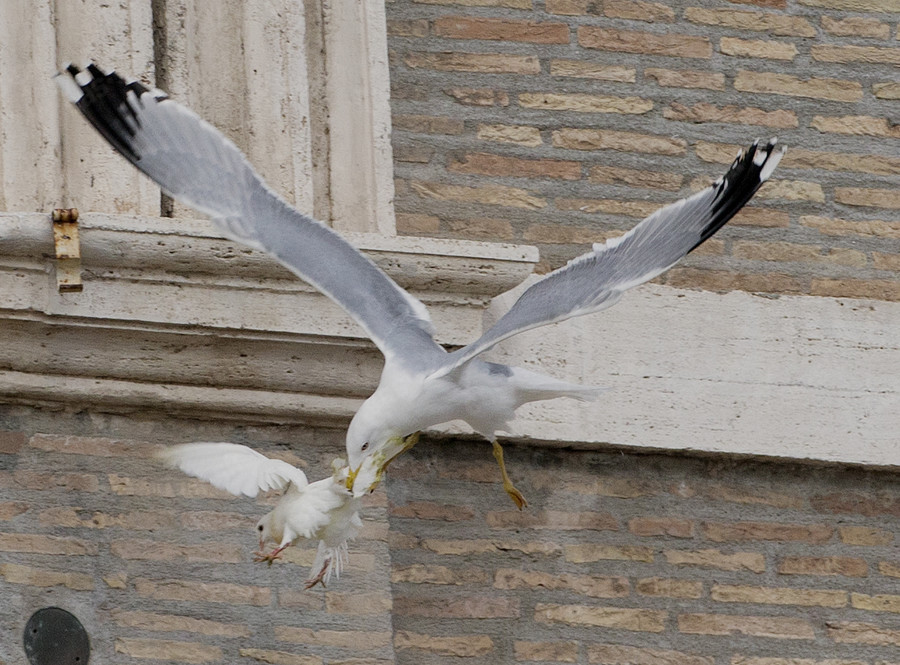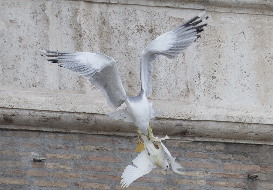 TV hiradóban egy provokatív informáczió referálta az eseményt, mikor Frantisek pápa gyermekek jelenlétében, két fehér galambot engedett szabadon. De szomorúan végződött.